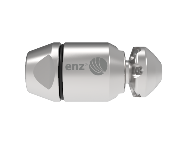 The enz® Bulldog® rotating nozzle has been designed for operation with recycling water and fresh water. The cleverly built sliding bearing allows the use of every kind of recycled water. An integrated oil-free braking system results in a low wear and tear operation and in controlled numbers of rotation. In this way a most efficient and economic pipe cleaning is achieved. The bore of the nozzle insert determines the admissible size of the dirt particles up to a maximum Ø 1mm.