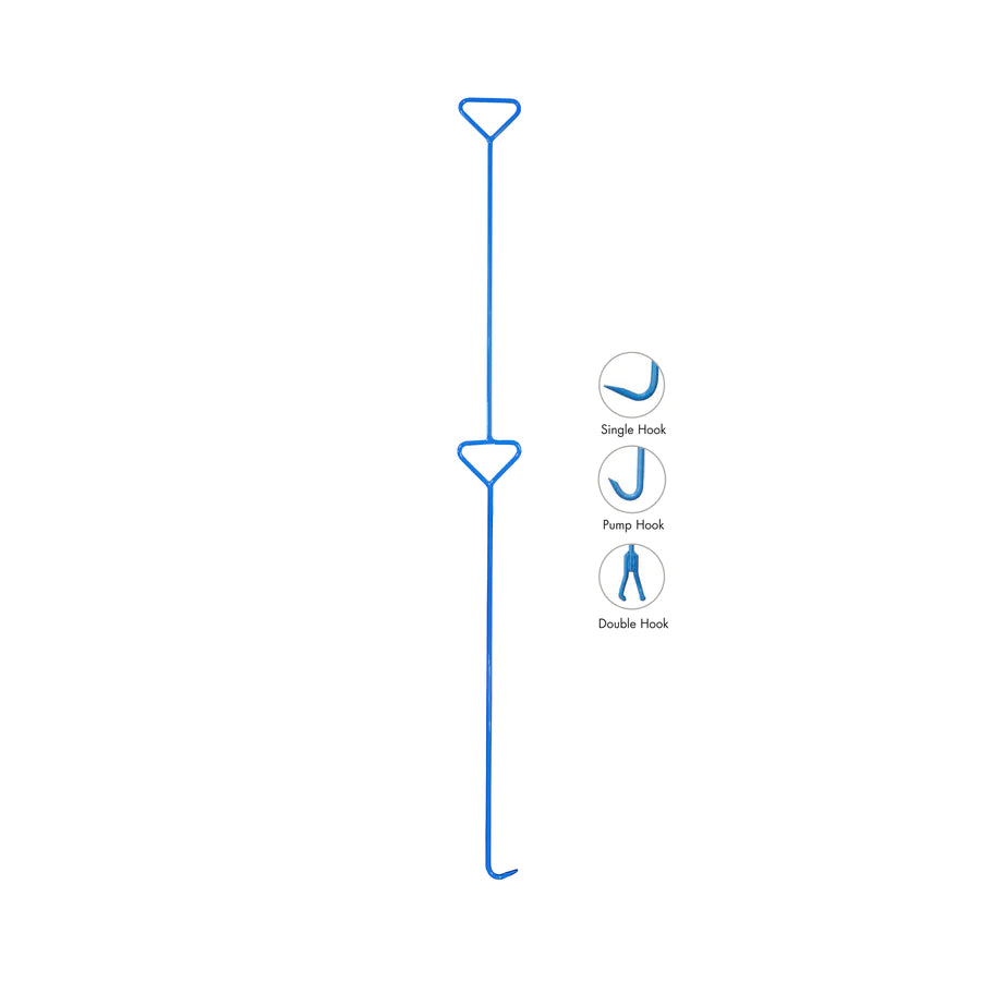Three different ends are available. The pump hook end is designed to hold pumps securely while lifting. The single and double hook ends are designed to reach between the filter baffles allowing the filters to be extracted.
